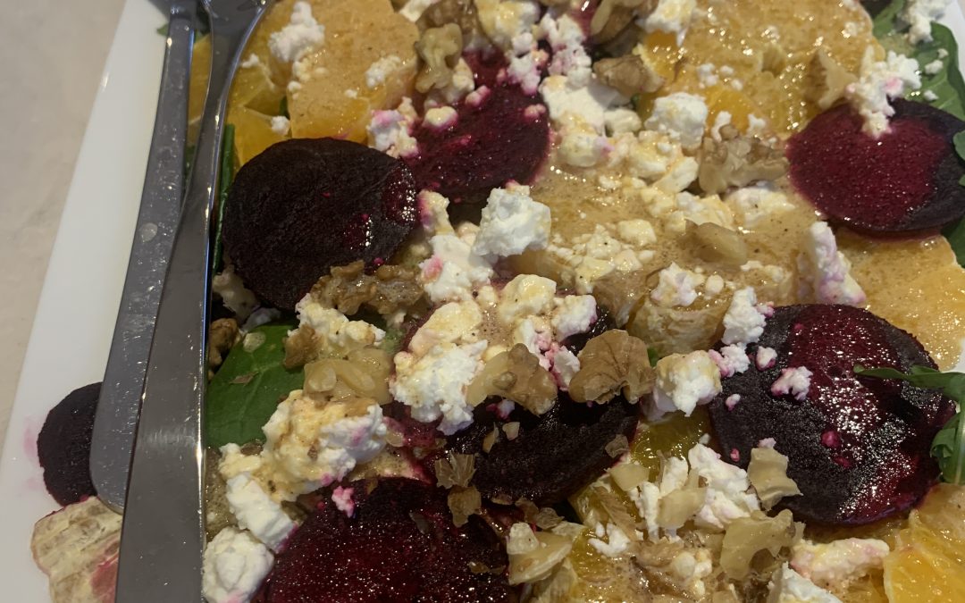 Colourful and bursting with vitamins, minerals and powerful antioxidants, this salad will make you smile. Serves 2  120g spinach leaves and rocket leaves mixed 4 medium beetroots cooked and sliced 2 oranges peeled and sliced  ¼ cup chopped walnuts 2 tbsp feta cheese...